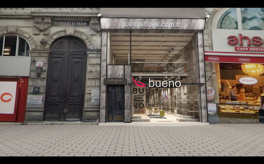 YURTDIŞI PAZARDA AKTİF OLARAK FAALİYET GÖSTEREN , YURTİÇİ PAZARDA MAĞAZACILIK SEKTÖRÜNDE FAALİYET GÖSTERMEYE BAŞLAYAN BUENO MAĞAZALARININ, TÜRKİYEDE BULUNAN 3 ŞUBESİNİN TASARIM VE UYGULAMALARI GERÇEKLEŞTİRİLDİ. İSTİKLAL CADDESİ ÜZERİNDE BULUNAN 2. ŞUBE , CADDE MAĞAZASI OLARAK FAALİYET GÖSTERİYOR. TASARIMINDA VE UYGULAMASINDA DİKKAT EDİLEN UNSUR, ÖZGÜNLÜK VE DİĞER ŞUBELERDE KULLANILAN ORTAK ÇİZGİLERİN HAKİMİYETİ OLDU.